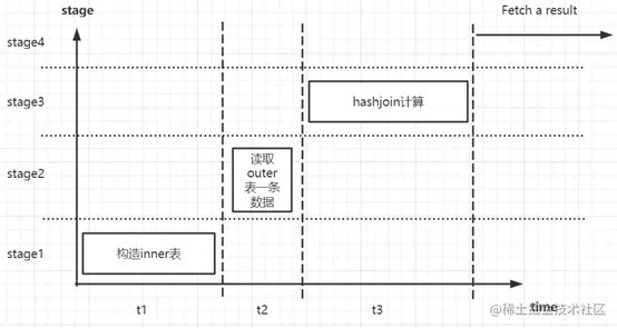 - 单点流程是串行化执行,导致取出 outer 表的一行数据需要等待正在进行的 hashjoin 计算完成。