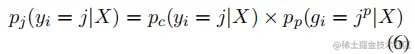 其中 pj (yi = j |X ) 是结合字符和发音预测,将 xi 的原始字符预测为第 j 个字符的概率,pc 和 pp 在等式 1 和等式 2 中分别定义,jp是第 j 个字符的发音。为此构建了一个指标矩阵 I∈Rnc×np,其中如果第 i 个字符的发音是第 j 个拼音,则 Ii,j 设置为 1 ,否则设置为 0 。那么联合分布可以是计算方式: