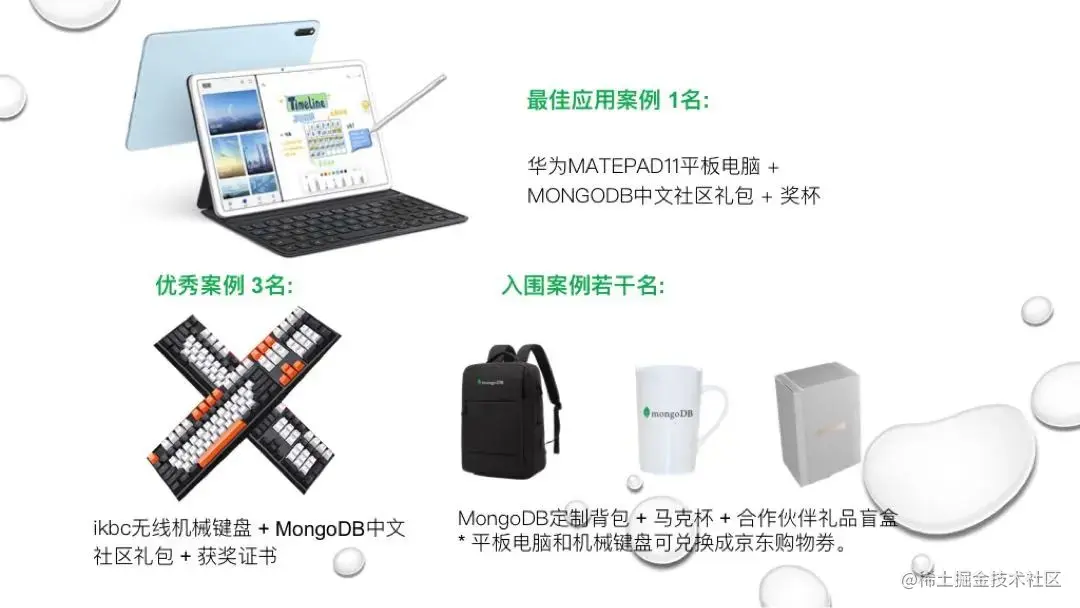 最佳应用案例 1名: 华为Matepad11平板电脑 +MongoDB中文社区礼包+ 奖杯