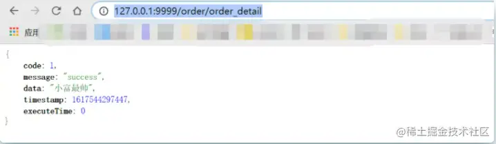 在页面访问刚刚创建接口的全路径 http://127.0.0.1:9999/order/order_detail ,发现已经成功返回数据。