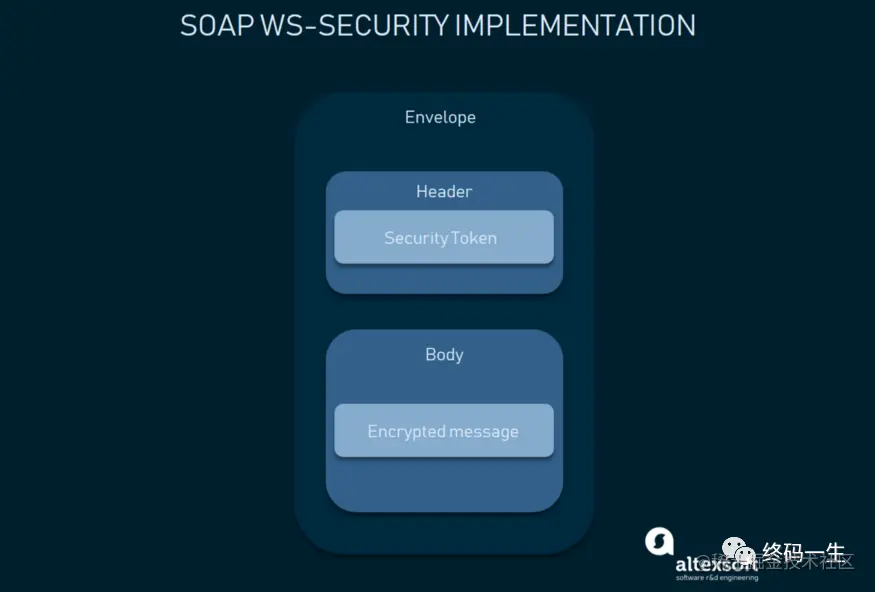 一系列的安全拓展。SOAP 与 ES-Security 集成,因此 SOAP 可满足企业级事务要求。它在事务内部提供了隐私和完整性,同时允许在消息级别进行加密。
