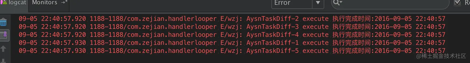 这里我们主要区分一下android3.0前后版本的差异,在android 3.0之前,AsyncTask处理任务时默认采用的是线程池里并行处理任务的方式,而在android 3.0之后 ,为了避免AsyncTask处理任务时所带来的并发错误,AsyncTask则采用了单线程串行执行任务。但是这并不意味着android 3.0之后只能执行串行任务,我们仍然可以采用AsyncTask的executeOnExecutor方法来并行执行任务。接下来,编写一个案例,分别在android 2.3.3 和 android 6.0上执行,然后打印输出日志。代码如下:
