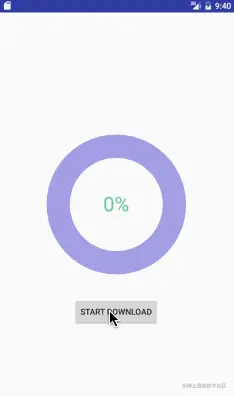 在AsynTaskActivity中实现了更新UI的接口DownLoadAsyncTask.UpdateUI,用于更新主线程的progressBar的进度,由于使用的测试版本是android6.0,涉及到外部SD卡读取权限的申请,所以在代码中对SD卡权限进行了特殊处理(这点不深究,不明白可以google一下),LoadProgressBarWithNum是一个自定义的进度条控件。ok~,最后看看我们的运行结果: