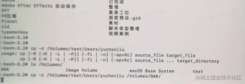 Cp -r /Volumes/test/Users/bytedance /Volumes/BAK