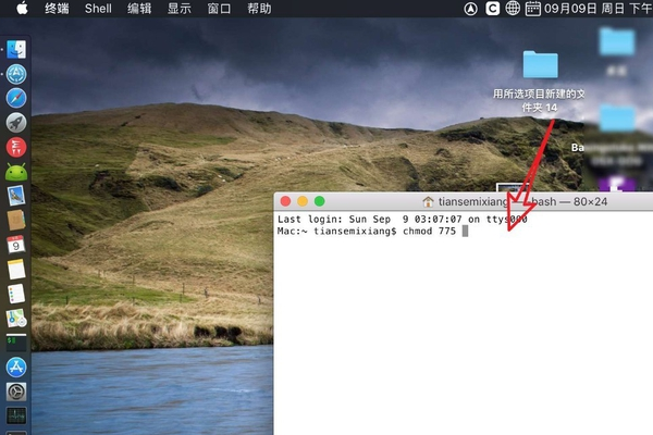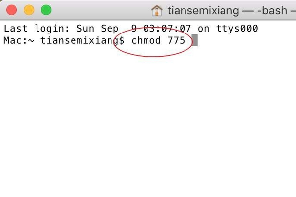 4、在弹出的权限命令框中,输入“chmod 775”。