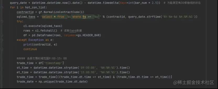 此外,由于期货不存在连续多年的行情,所以对于长期的数据展示,我们选择用多段的每X个月数据进行拼接,查询效率非常快。例如:在TDengine客户端服务器使用Python从服务端拉取连续两个月的期货行情数据,耗时仅需0.16秒。