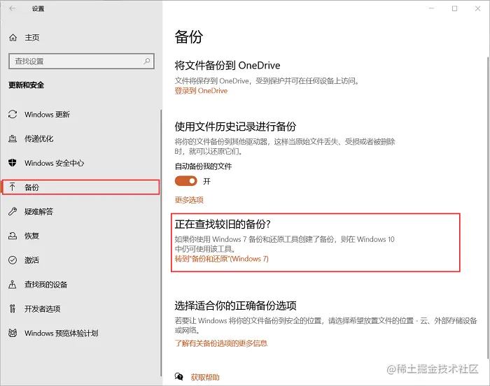 步骤一:打开设置页面,在左侧单击备份。转到备份和还原。