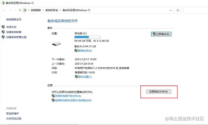 方法二:还原系统自带的备份