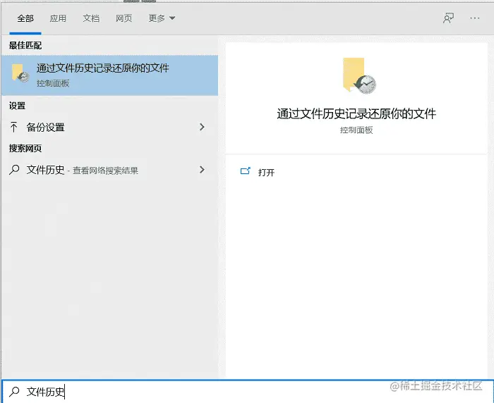 方法一:在文件历史记录还原文件