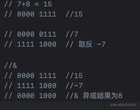 7为 0000 01111,~为取反,则为1111 1000,15为0000 1111。