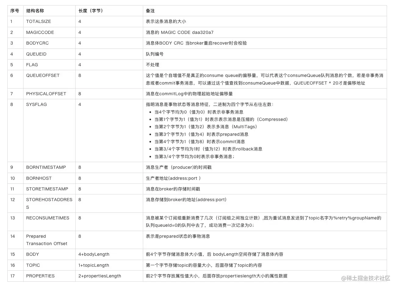 从源码上直接看一下 CommitLog 存储时逻辑上的数据结构情况(代码源自 CommitLog 类):