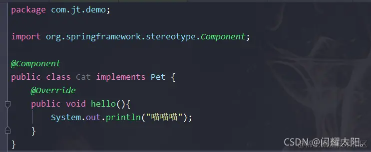@Component //将对象交给spring容器管理 key:cat value:反射Cat对象
