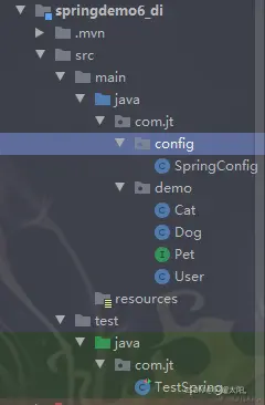 说明:Dog/Cat向User类进行对象注入功能