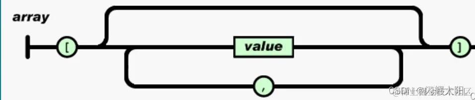 数组(array) 是值(value)的有序集合。一个数组以“[”(左中括号)开始,“]”(右中括号)结束。值之间使用“,”(逗号)分隔。