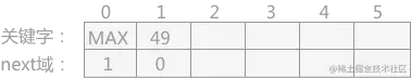 - 首先使存储 49 的结点与表头结点构成一个初始的循环链表,完成对链表的初始化,如下表所示: