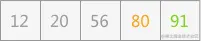 - 第四次遍历时,从下标为 4 的位置即 91 开始,找出最小是 80,同下标为 4 的关键字 91 互换位置: