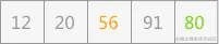 - 第三次遍历时,从下标为 3 的位置即 80 开始,找出最小值 56,同下标为 3 的关键字 80 互换位置: