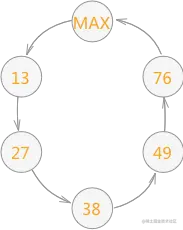 - 再将以 76 为关键字的结点插入到循环链表中,插入后的链表为: