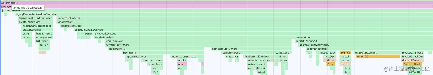 对比下开启和未开启concurrent mode的区别,开启之后,构建Fiber的任务的执行不会一直处于阻塞状态,而是分成了一个个的task