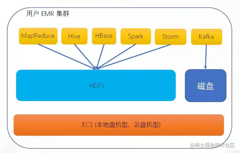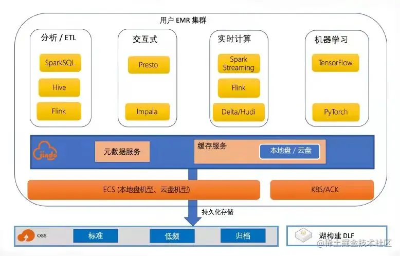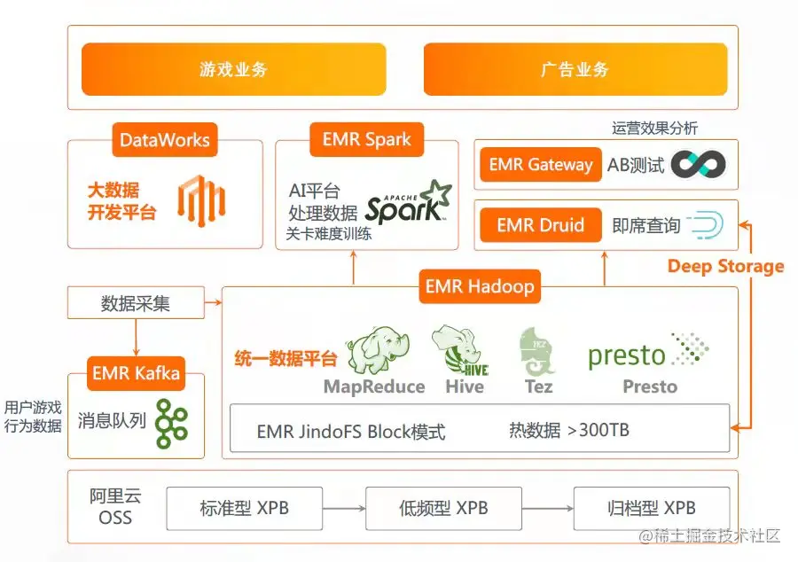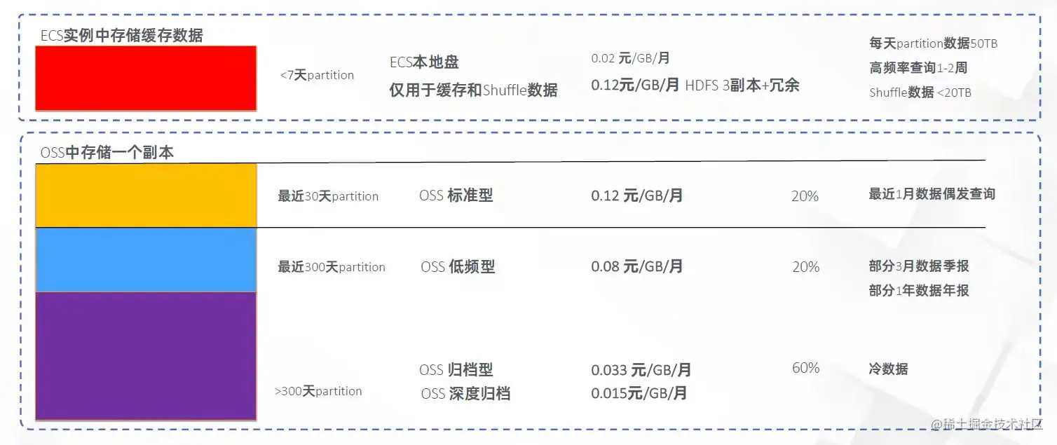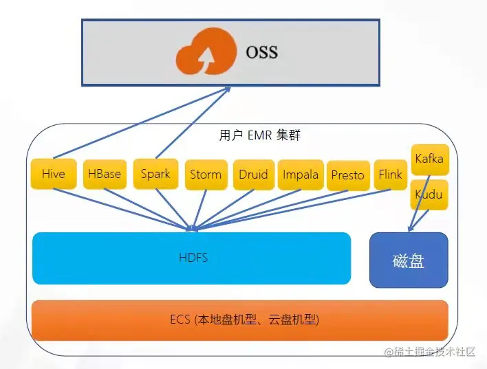 采用OSS替代HDFS,作为企业统一数据湖,采用分层存储降低用户使用成本