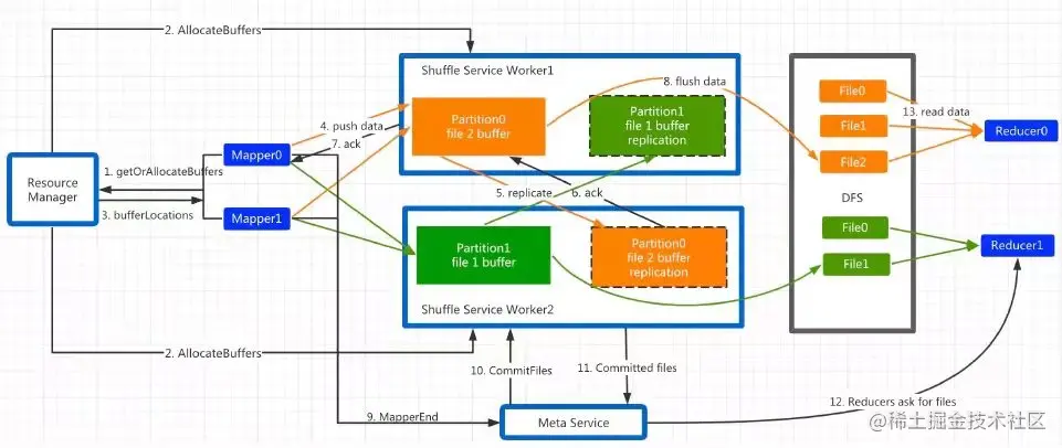 Shuffle数据通过网络写出,中间数据计算与存储分离架构