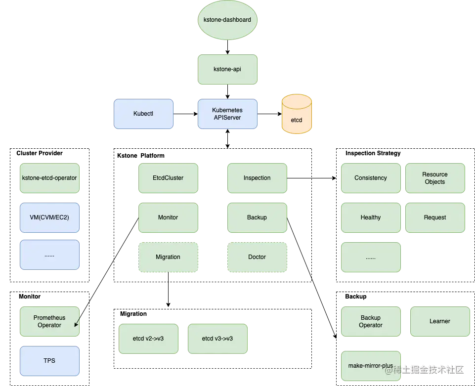 Kstone 是腾讯云容器TKE团队发起的一个基于 Kubernetes 的云原生一站式 etcd 治理项目。该项目源自腾讯内部大规模 etcd 集群治理和最佳实践,很好的实现了对各类业务场景下的 etcd 集群的可视化管理和运维,极大简化了各类场景的 etcd 运维复杂度,将帮助你及时发现各种潜在的 etcd 集群隐患,显著提高 K8s 和 etcd 集群的稳定性和数据安全性,助力业务更稳更快运行。