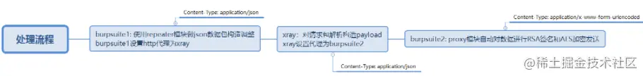 - Content-type字段的问题,xray解析json数据需要为application/json,而server需要为application/x-www-form-urlencoded