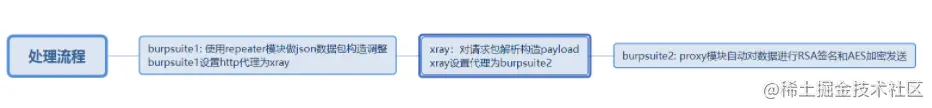 这个是为啥呢,是这样,因为要测试的接口较多,而且参数也比较多,我想使用xray来扫描,那么就得将原始数据包先经过xray,xray做解析,然后再发给burp做加密,最终发送。