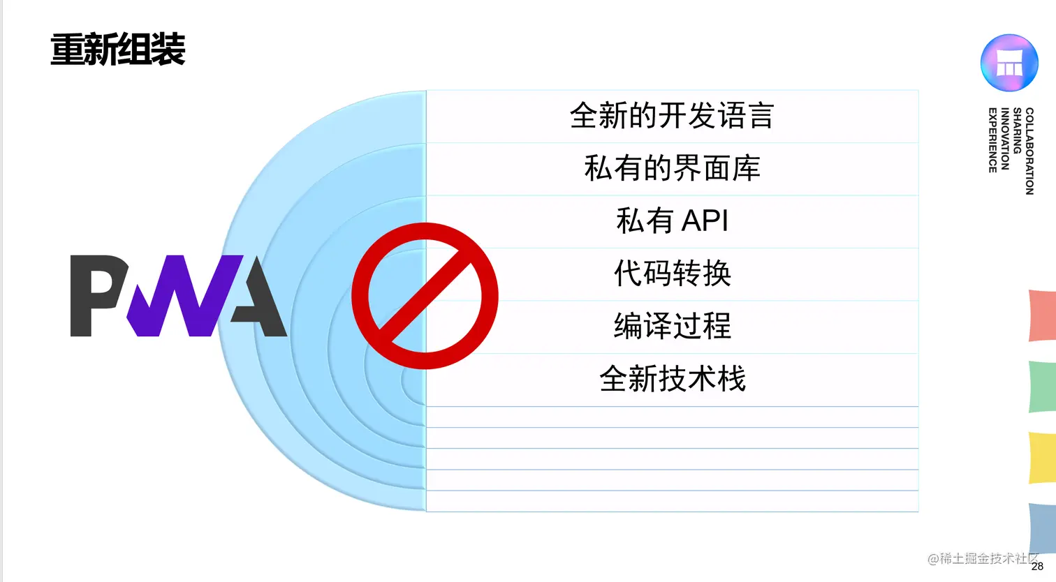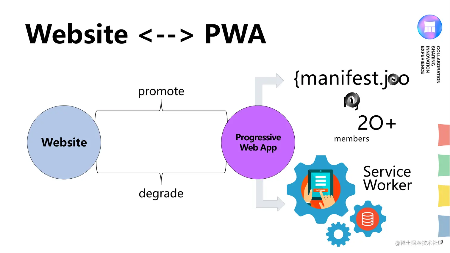 PWA 中的各个部分并不都是全新的概念。Service Worker 并不是 PWA 专享的技术,我们可以为任何网络应用程序添加这个特性。将这些已有的 Web 技术重新组装并给出全新定义,正是 PWA 与其他一些网络应用程序不一样的地方。