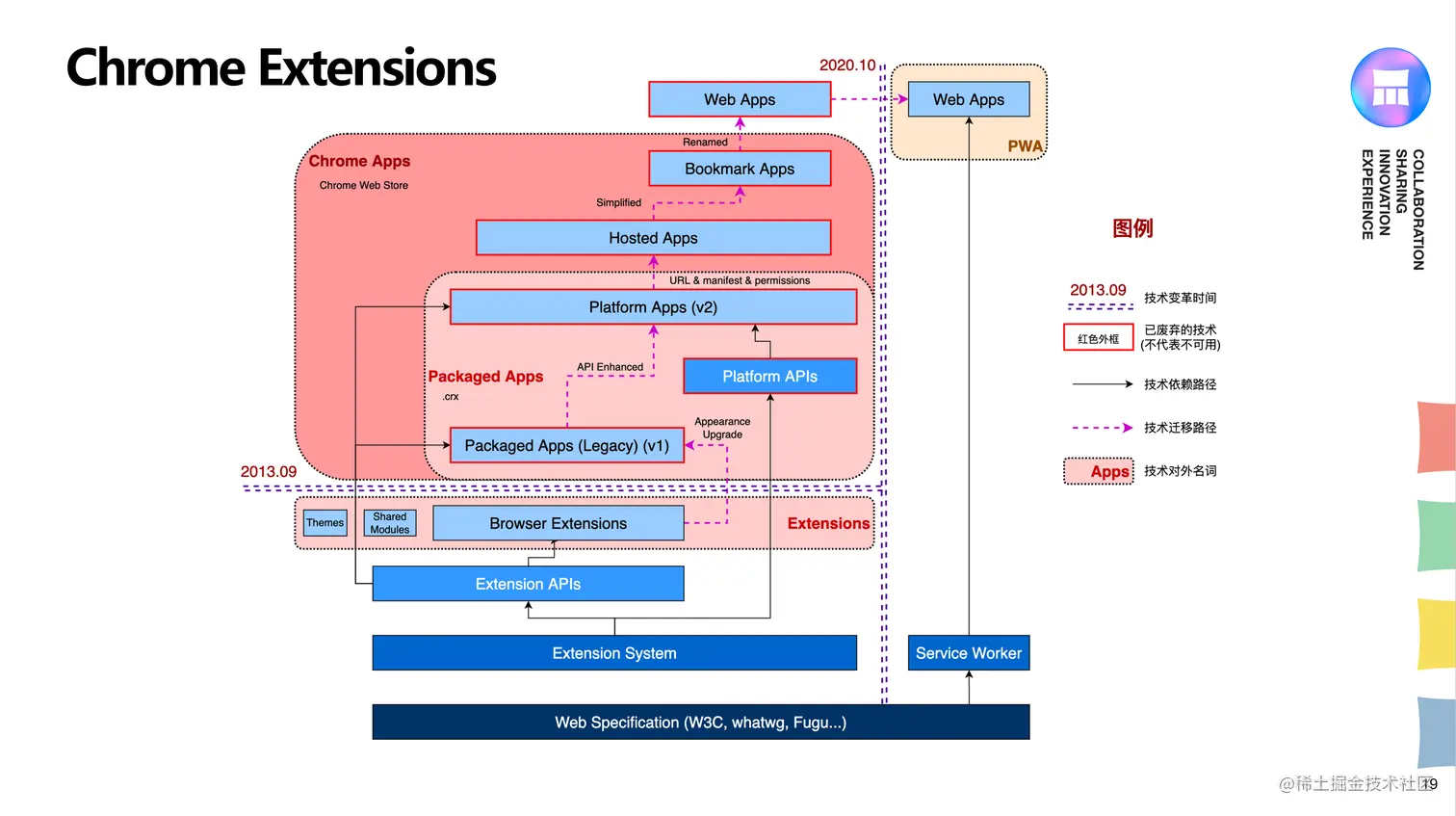 前后两代 Chrome Apps 的废弃,宣告着 Chrome 团队会更大力度的推进 PWA。PWA 这种基于“站点”的网络应用程序,在整个 Chrome 的 Extension 系统中也有一条很清晰的发展线。
