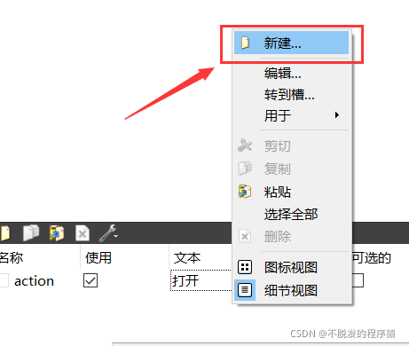 可以在Qt Designer的属性编辑器中新建addWinAction动作,并拖入添加到工具栏中,其详细信息如下图所示: