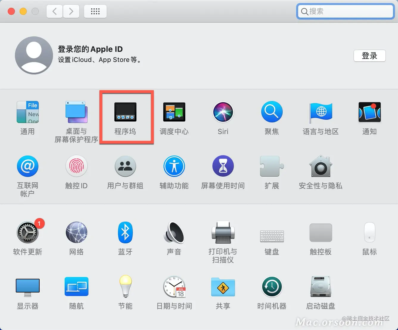 1.打开苹果菜单并单击“系统偏好设置”,然后导航到“程序坞”部分。