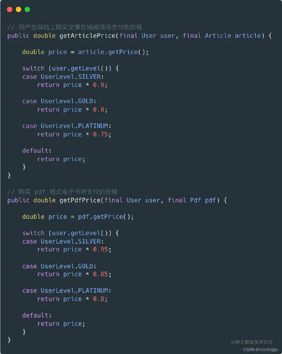 这并非仅有的根据用户级别进行判断的代码,各种需区分用户级别场景都有类似代码,而这也是一种典型的坏味道:重复switch(Repeated Switch),通常都是因为缺少一个模型。