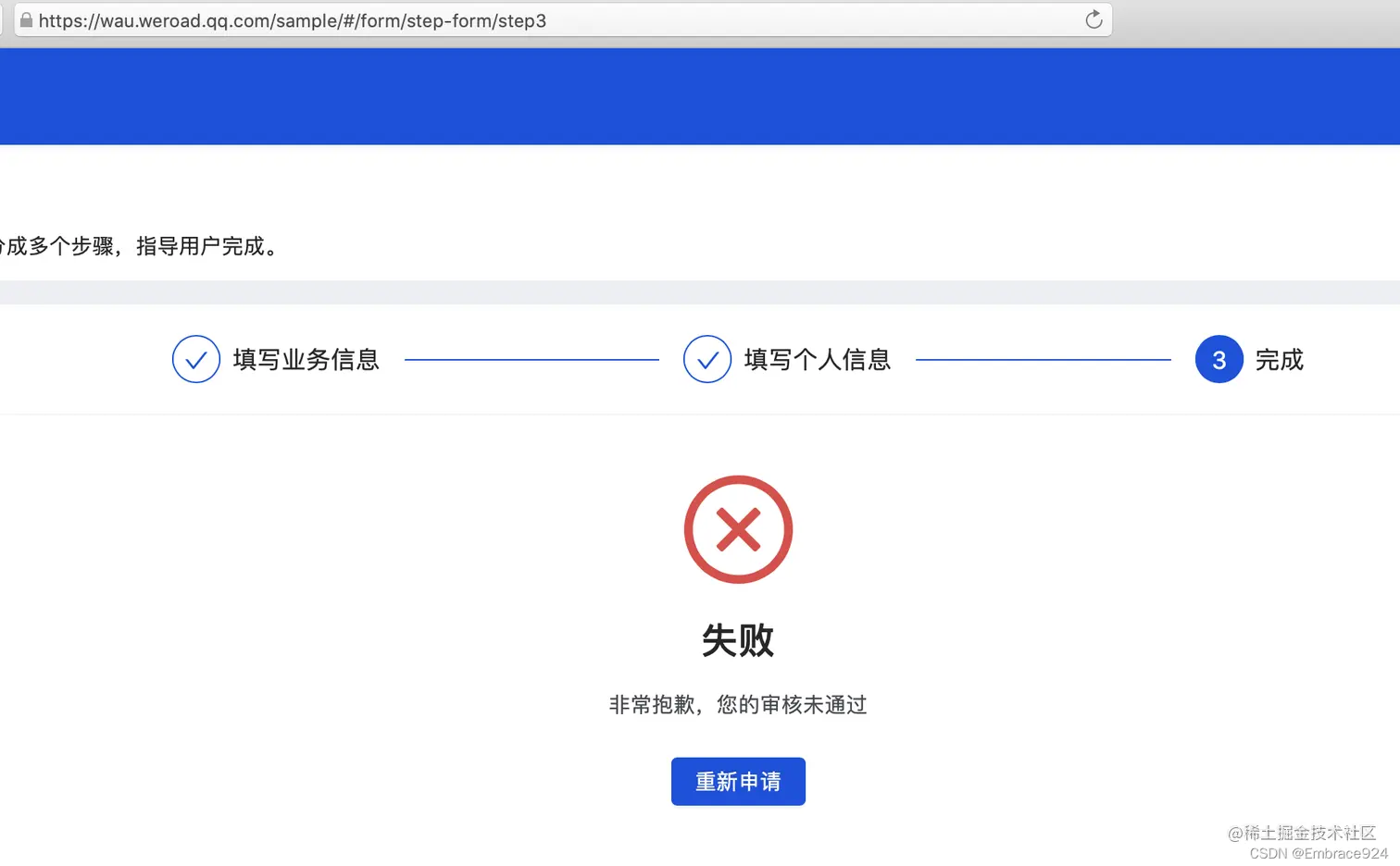 4.当我们 点击继续 路由 为 "form/step-form/step3"