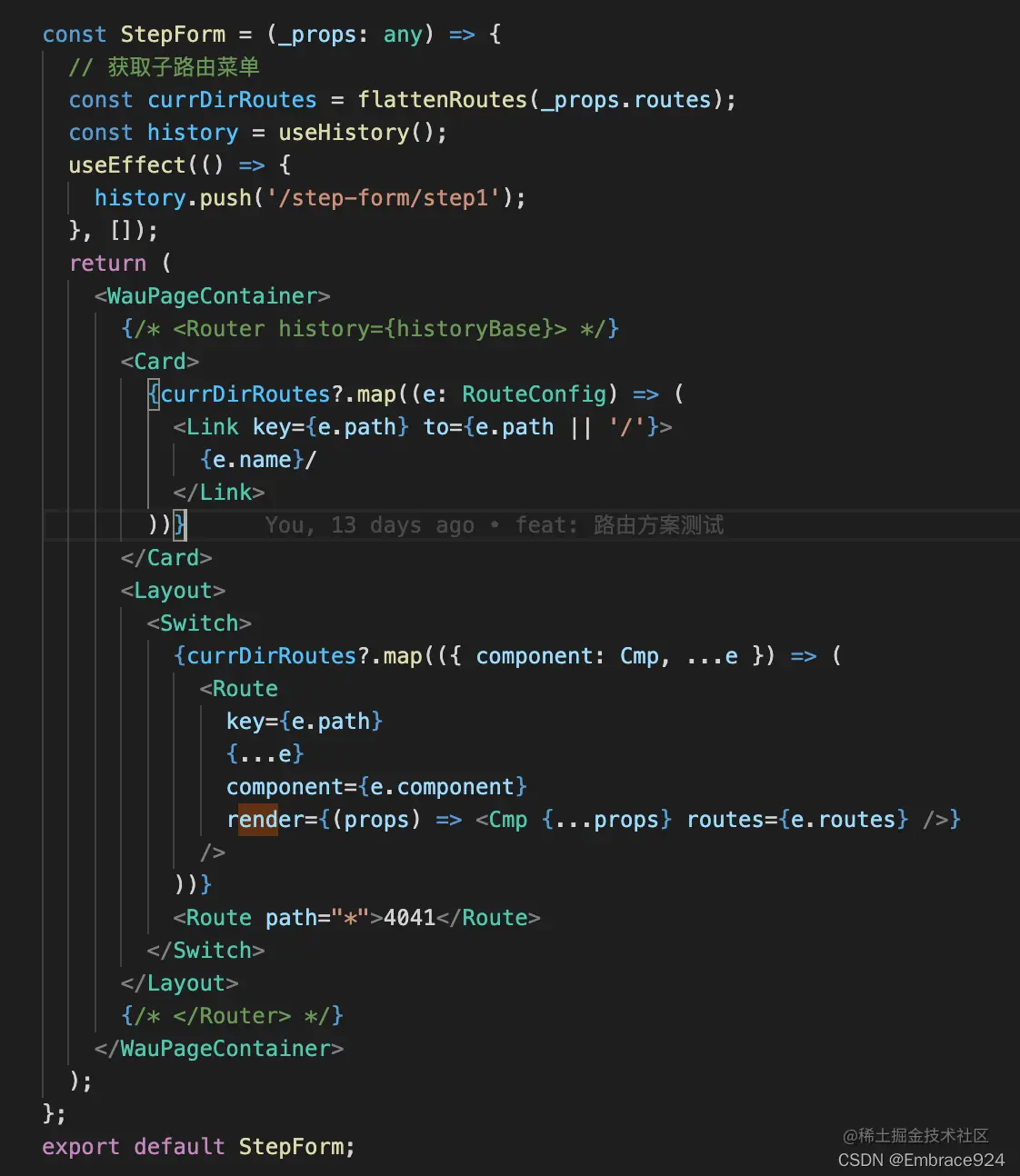 如果这里 父路由 path: '/step-form' 的路由 exact为false 的模糊匹配