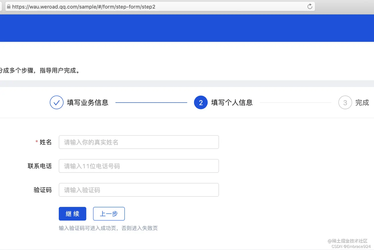 4.当我们输入完成验证通过 点击下一步 路由 为 "form/step-form/step2"