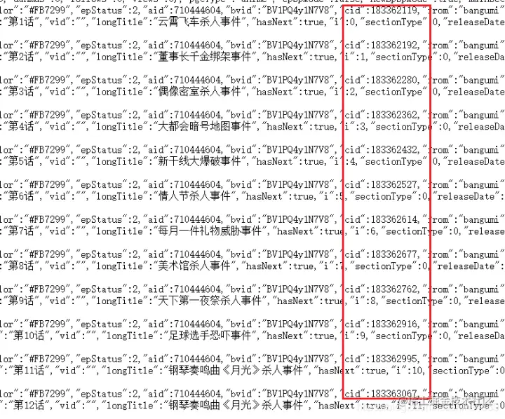 不难看出,CID则是对应着各个视频的ID,接下来用正则提取即可。