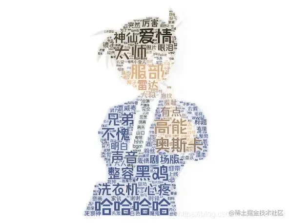 从图中可看出,出现频率较高地词有整容、服部、声音、爱情等。(看来凶手是整成了新一的模样进行犯罪的,还有新兰的感情戏在里面,值得一看)