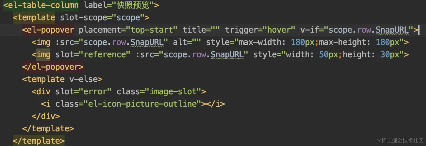 调整后台接口并要求返回该字段默认没有值为空并把判断改为 v-if=“scope.row.SnapURL !== ‘’” 从而解决该问题。