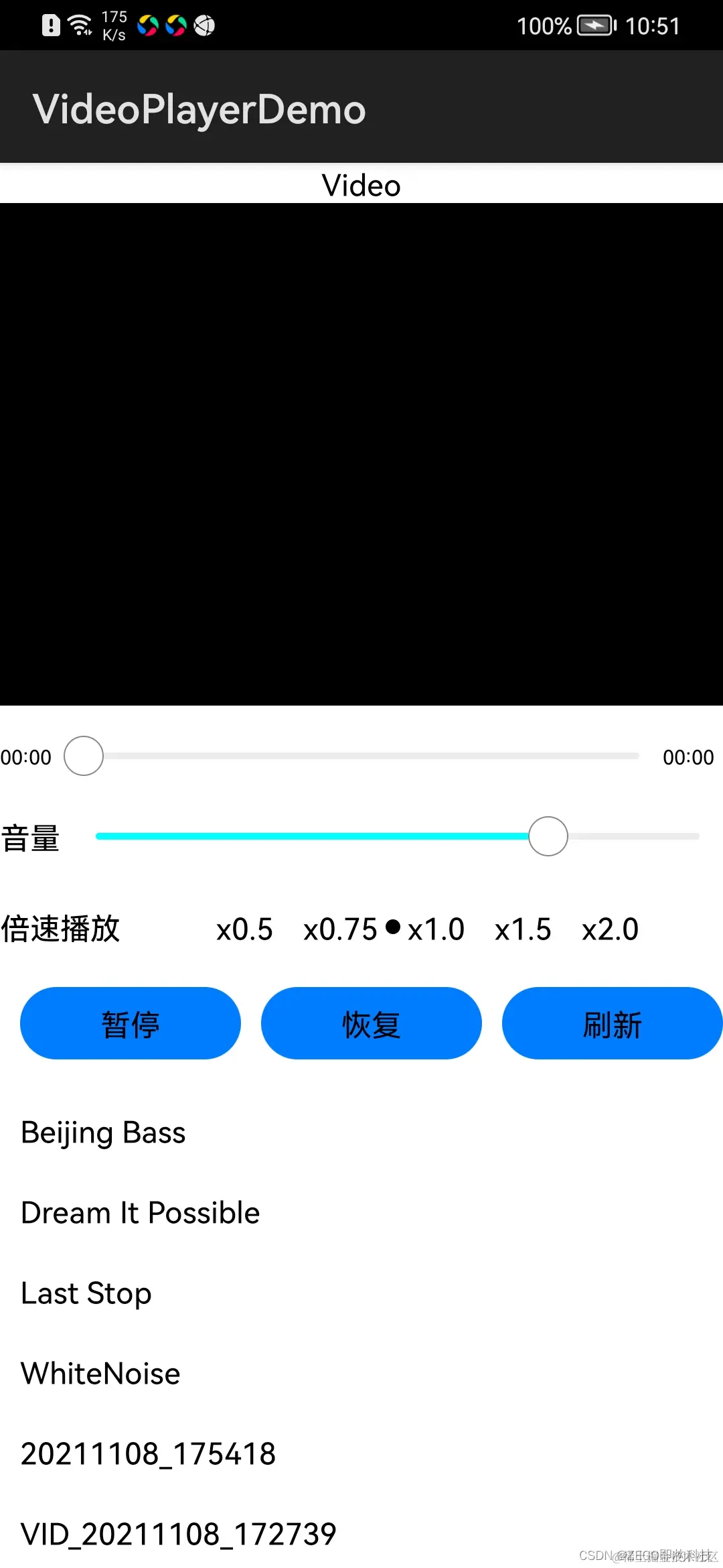 通过上面的 UI 界面,我们可以清晰的看出要实现哪些简单功能,例如播放、暂停、恢复、跳转、音量调节、倍速播放和播放进度更新。