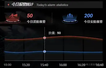 园区内各角落安装了多个监控系统,集成各类子系统的设备设施与监控系统的的管理,可集状态检测、故障报警、故障分析、运维管理于一体并通过 HT 可视化系统进行展示,如:今日消防报警、今日安防报警等信息。实现对各类视频监控系统相关的设备运转状态的检测与查询,运维系统一旦发现视频监控系统设备运转状态发生异常,立即自动向运维管理中心发出故障报警。