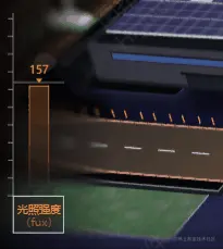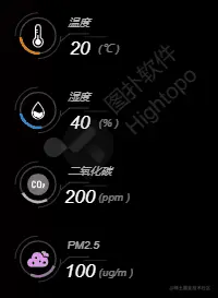 结合大数据技术以及对接天气系统,对园区内的环境进行全天候的监测,从温度、湿度、二氧化碳、PM2.5 等方面进行环境数据的采集,并在 2D 面板上实时展示,光照强度随着环境的改变也会进行变化。