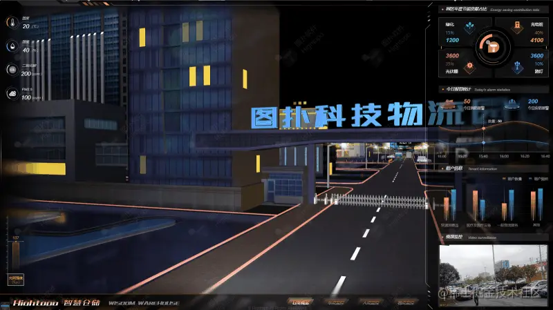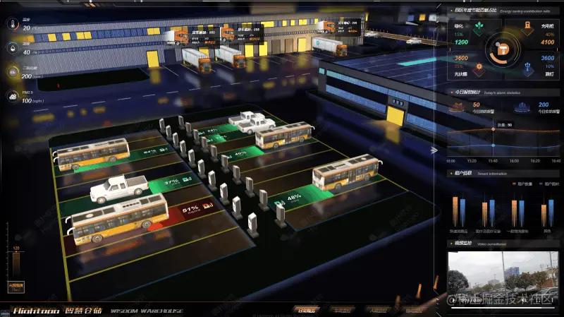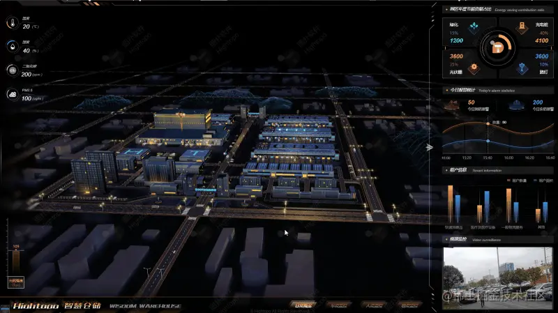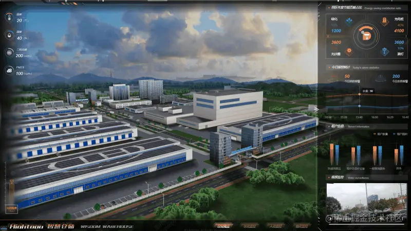 本次案例利用 Hightopo 产品 HT for Web 数字孪生 HT 物流产业园区,将上下游系统打通并借助智能硬件实现数据联动,从园区日常管理、车流监控、人流监控、物流监控等多维度的呈现,使各流程密切联系,搭建出智慧园区与物流仓储的一体化可视化管理平台,提高物流园区的管理和工作效率,降低人工成本和管理成本。