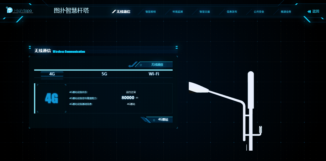 智慧城市建设及 5G 的带动下,智慧路灯成为了信息通信技术与传统城市公共基础设施融合的典范,园区内的光伏路灯、光伏棚、充电桩等绿色环保能源都可通过 HT 可视化进行系统集成的管控监测。