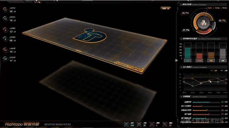 HT 仓储管理监控的实现对仓储场景起到监控的作用,对于货架和移动中的货品进行了数据采集,可通过可视化系统快速获取设备的运行状态,货架的数据变更以及面板数据的实时反馈,达到全方位掌握仓储转运中心的活动状态,起到监管、维护以及调配多维度统一。