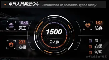园区作为的人员流动以及客流密度较为频繁,通过接入门禁识别、人脸监控等安防设备数据,利用不同的 2D 数据可视化样式展现园区内的各项人员客流情况人员。