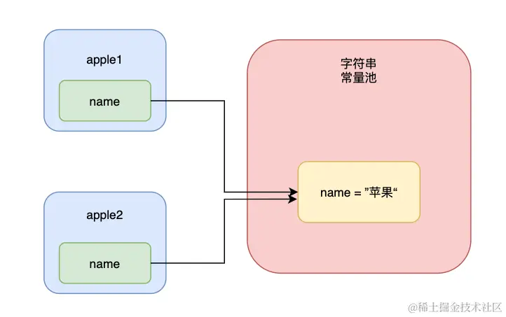 System.out.println("是否为同一个字符串对象:" + apple.name.equals(apple1.name));