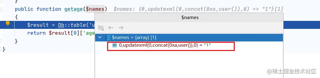 正常查询,传参names[]=li,构造出来的应该是这样