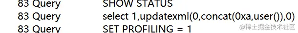 使用user()查询日志: